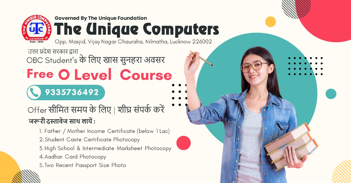 9335736492 Welcome to The Unique Computers Governed By The Unique Foundation – Your Trusted, Affiliated by NIELIT and Non-Funded Government-Recognized Computer Institute in Lucknow.